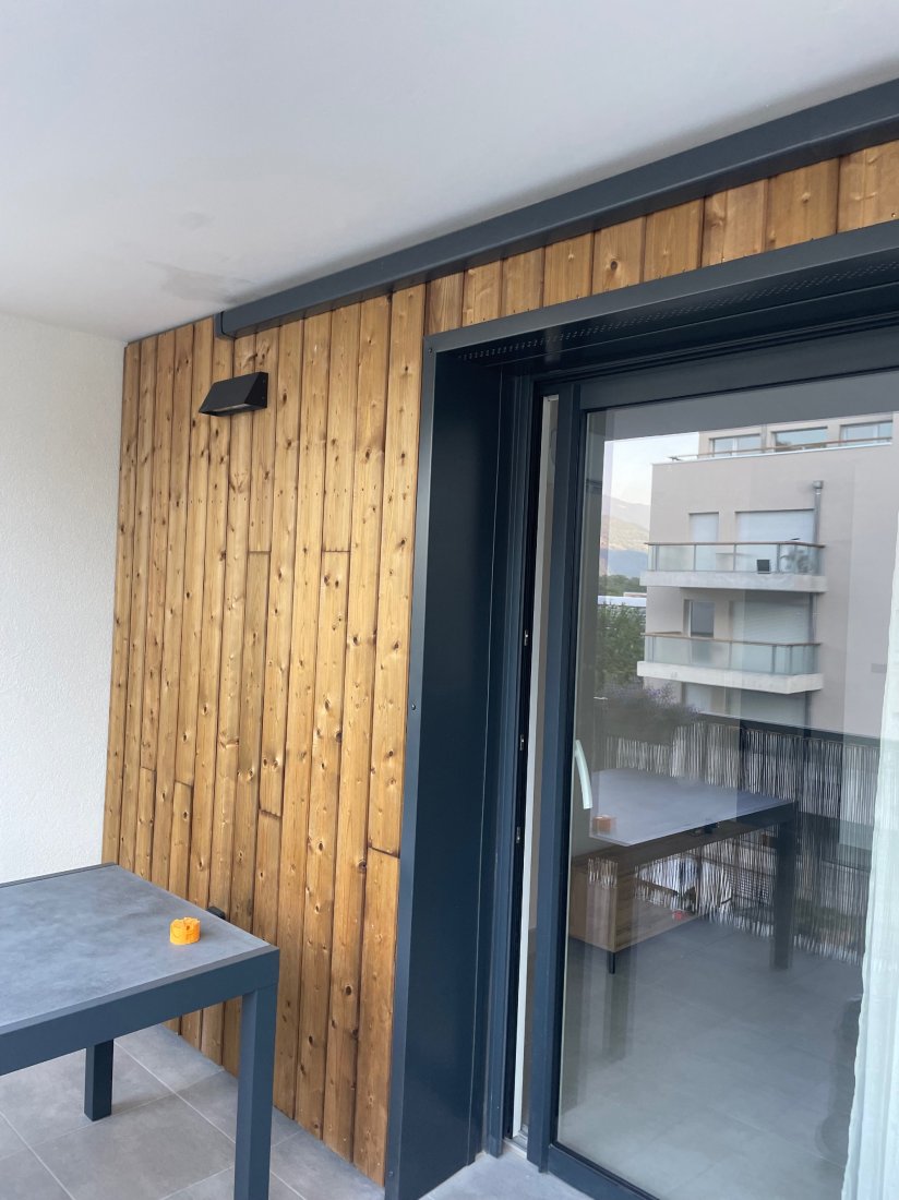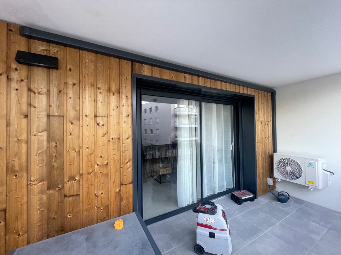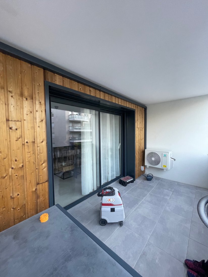Installation discrète d’un système de climatisation multisplits sur la terrasse d’un appartement à Crolles, assurant confort et esthétique grâce à l’expertise de SANIT 'AIR CONFORT.